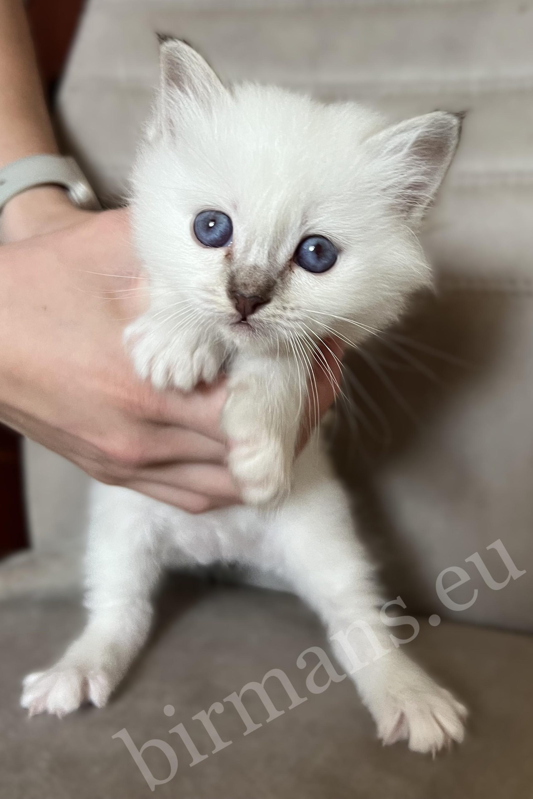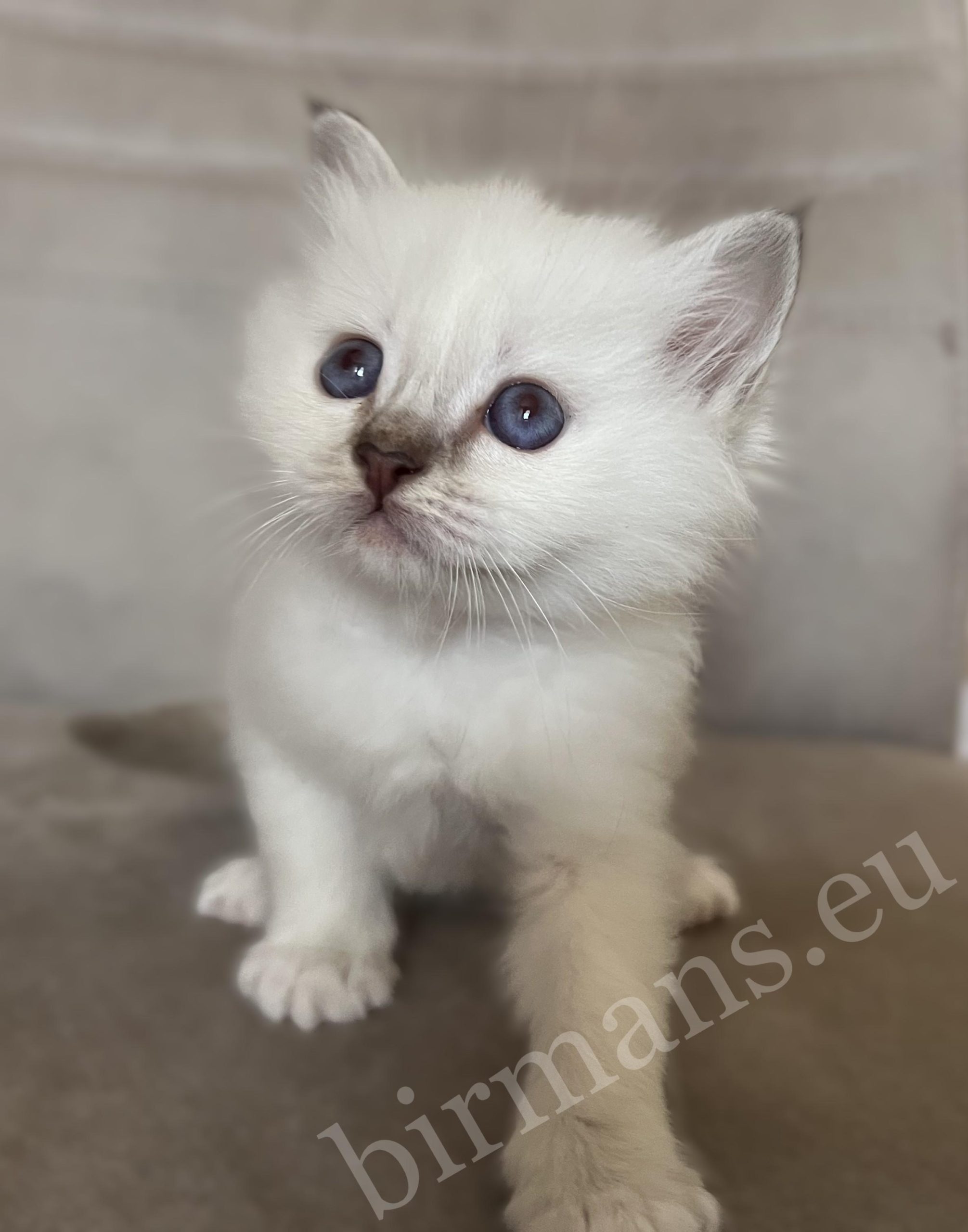 Puha, selymes bundája és harmonikus megjelenése igazi „ölelni való” benyomást kelt, miközben karakterében ott van a Birmanokra jellemző stabilitás és mélység.