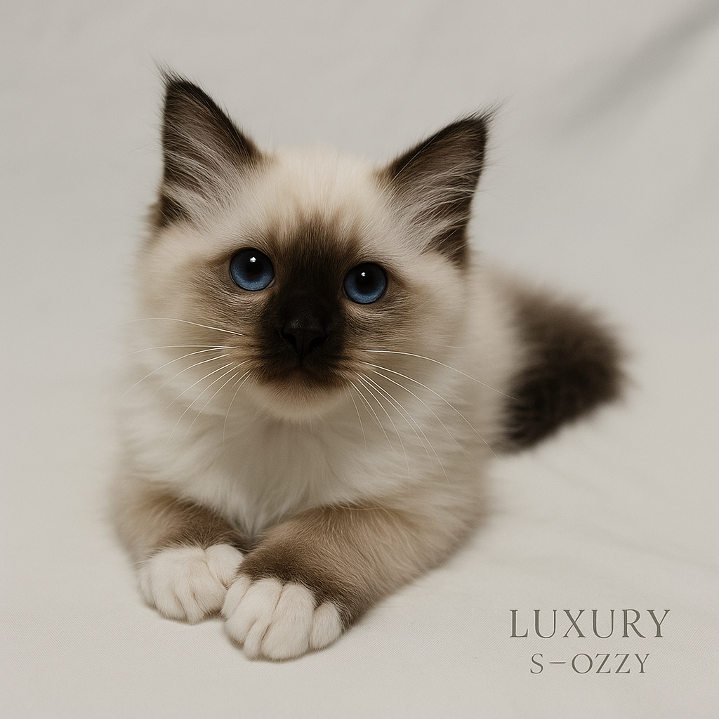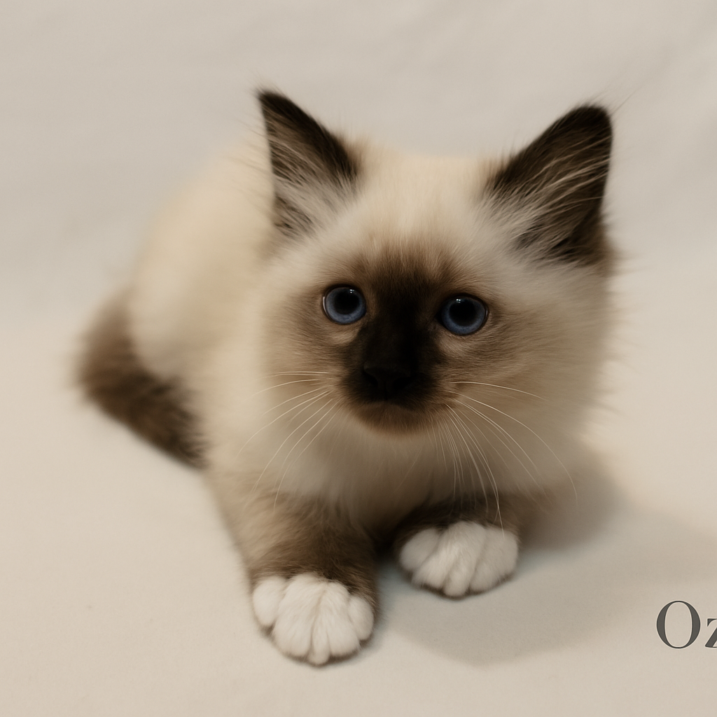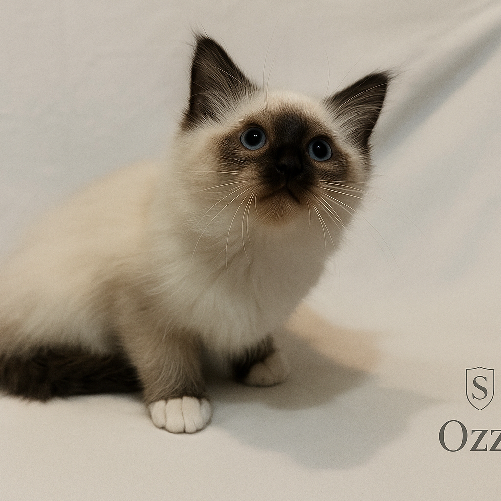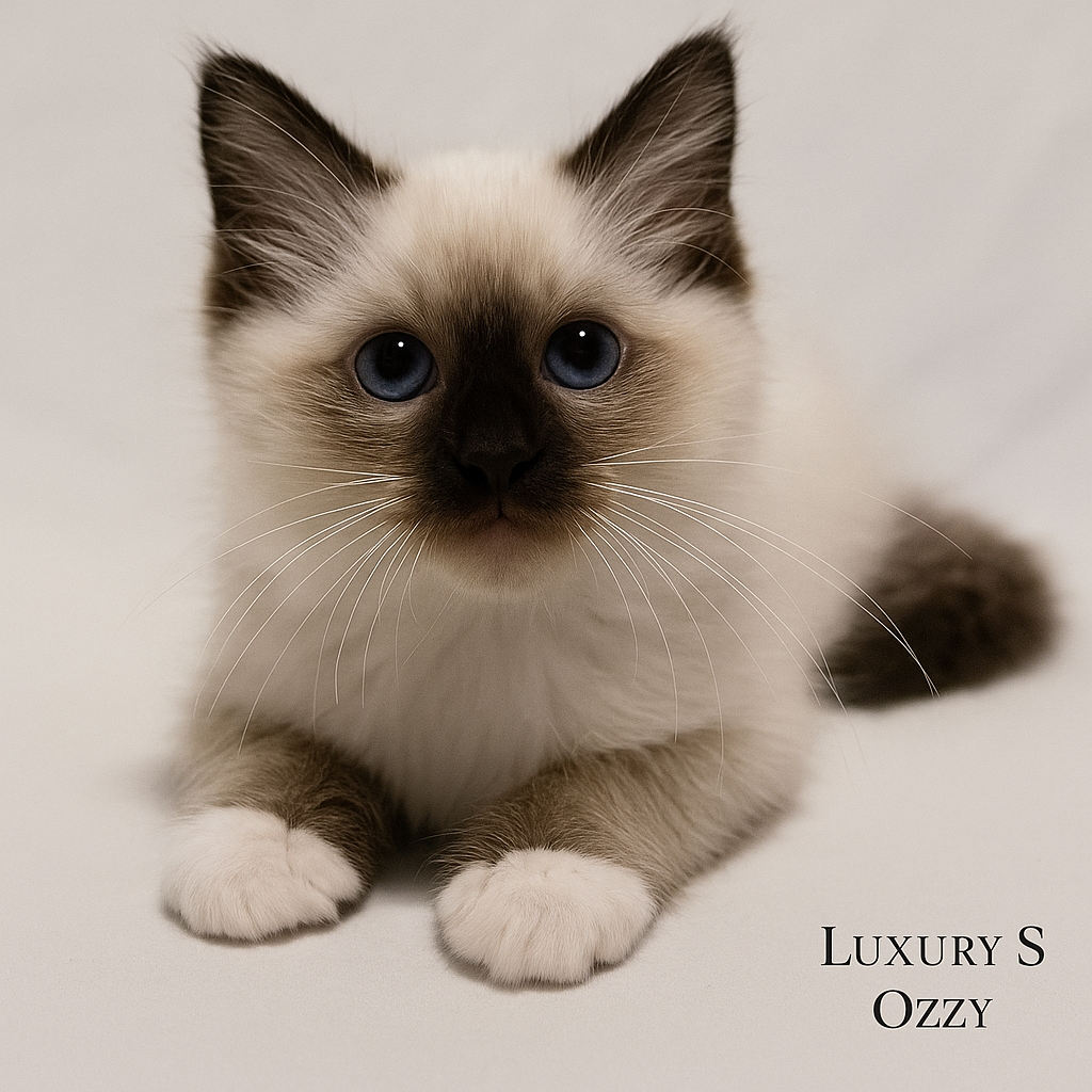 A Birman kiscica igazi kis szelíd társ – szeretetteljes, bújós és hűséges. Barátságos természetével hamar a család kedvencévé válik, mindig ott van, ahol az ember, és szívesen osztja meg a mindennapokat gazdájával. Intelligens, játékos és kiegyensúlyozott, így egyszerre nyújt nyugodt társat és vidám játszópajtást. Ozzyt kíváló kiállítási jegyei, győztes vérvonala miatt tenyésztésre és kiállításra is ajánlom