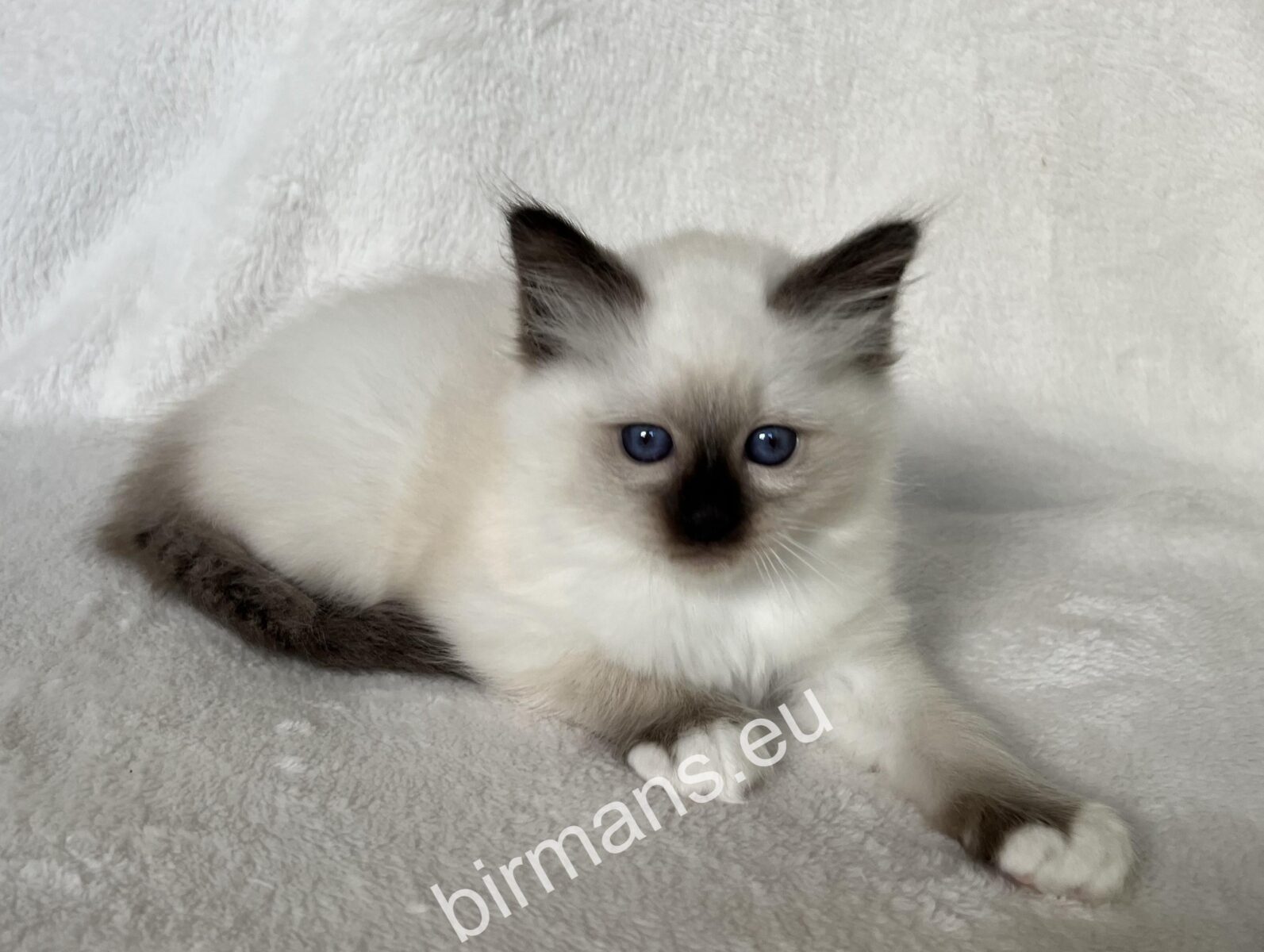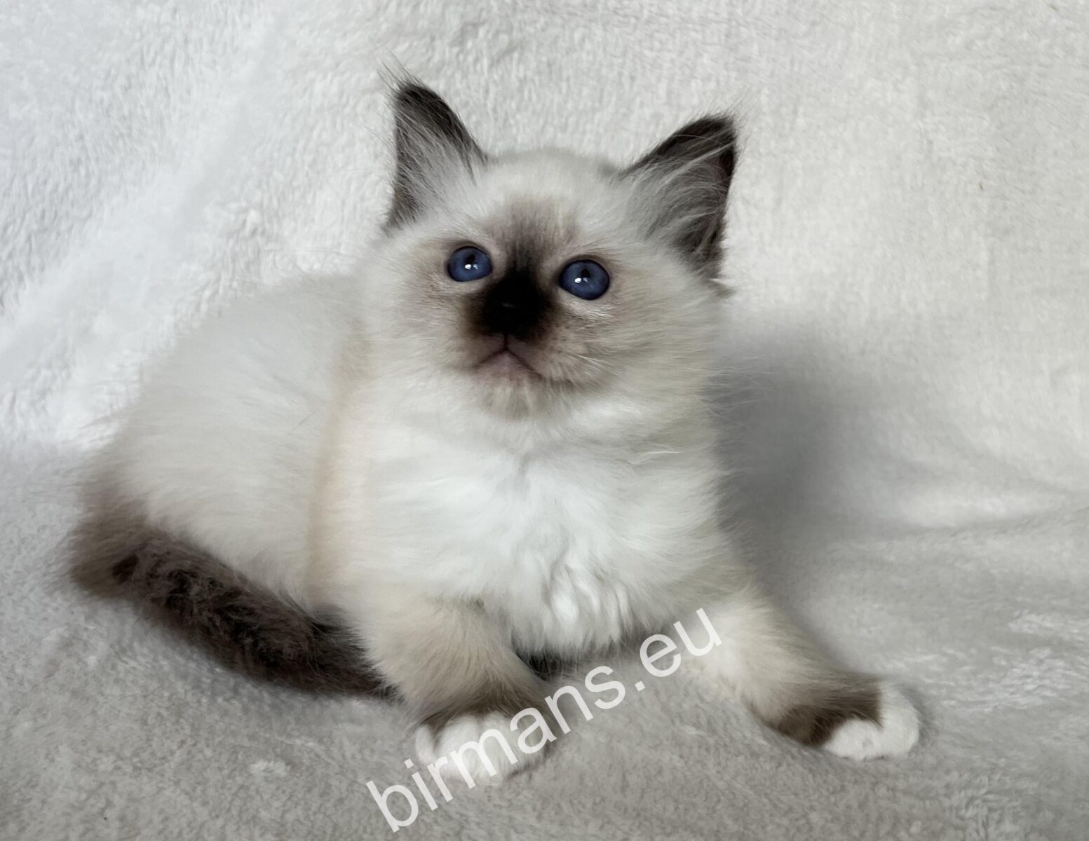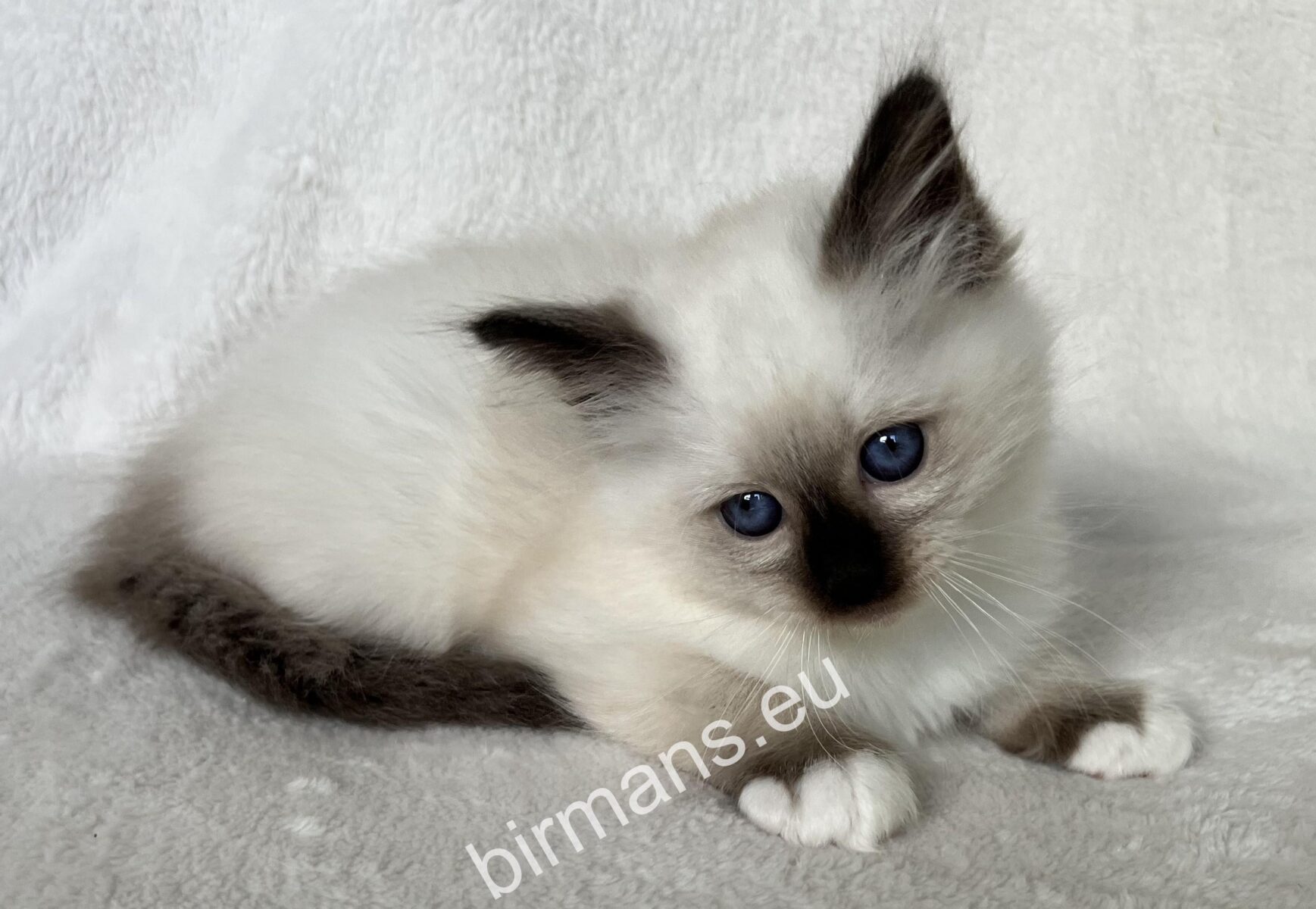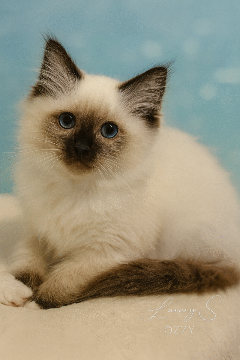 A Birman kiscica igazi kis szelíd társ – szeretetteljes, bújós és hűséges. Barátságos természetével hamar a család kedvencévé válik, mindig ott van, ahol az ember, és szívesen osztja meg a mindennapokat gazdájával. Intelligens, játékos és kiegyensúlyozott, így egyszerre nyújt nyugodt társat és vidám játszópajtást. Ozzyt kíváló kiállítási jegyei, győztes vérvonala miatt tenyésztésre és kiállításra is ajánlom