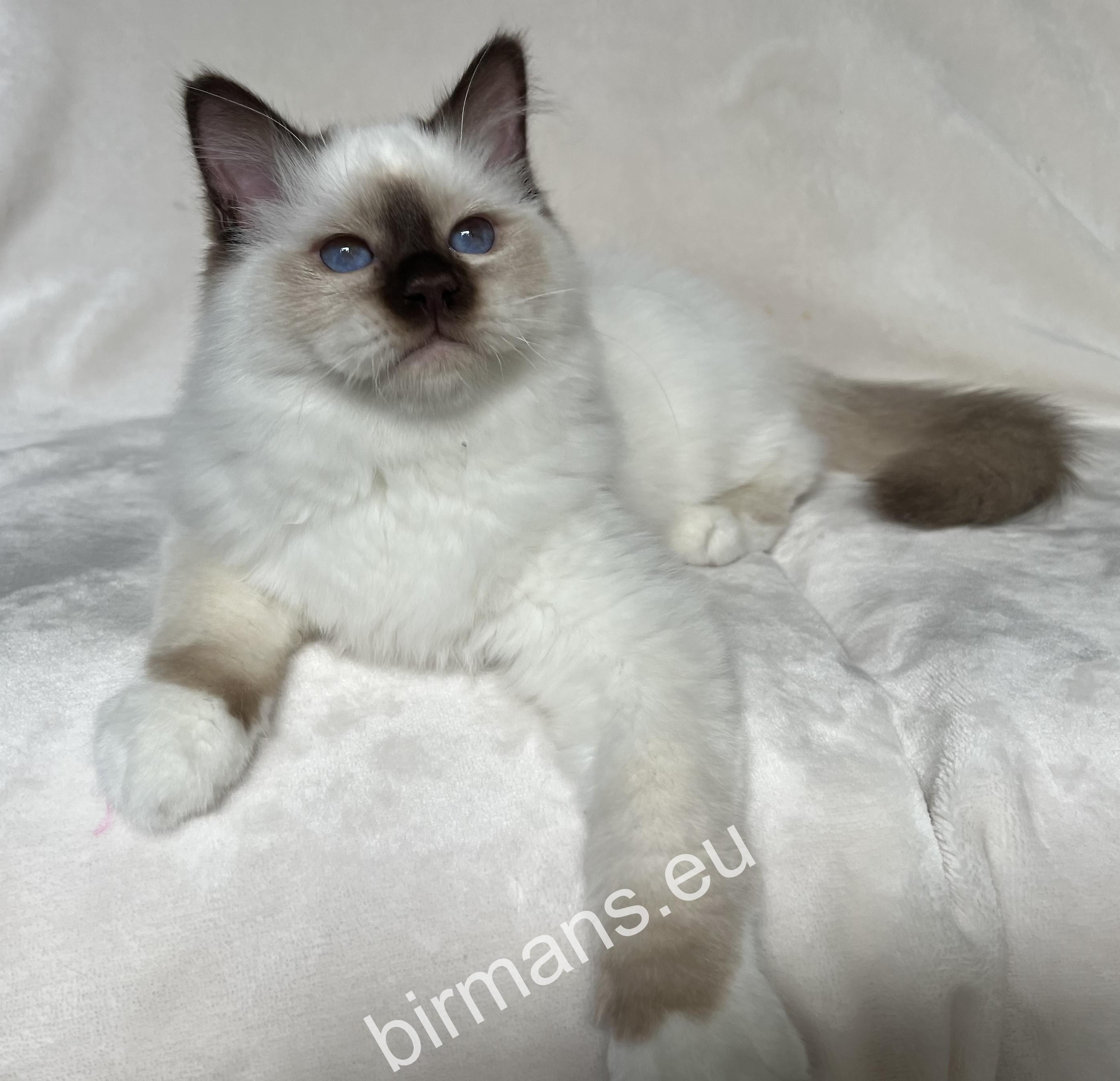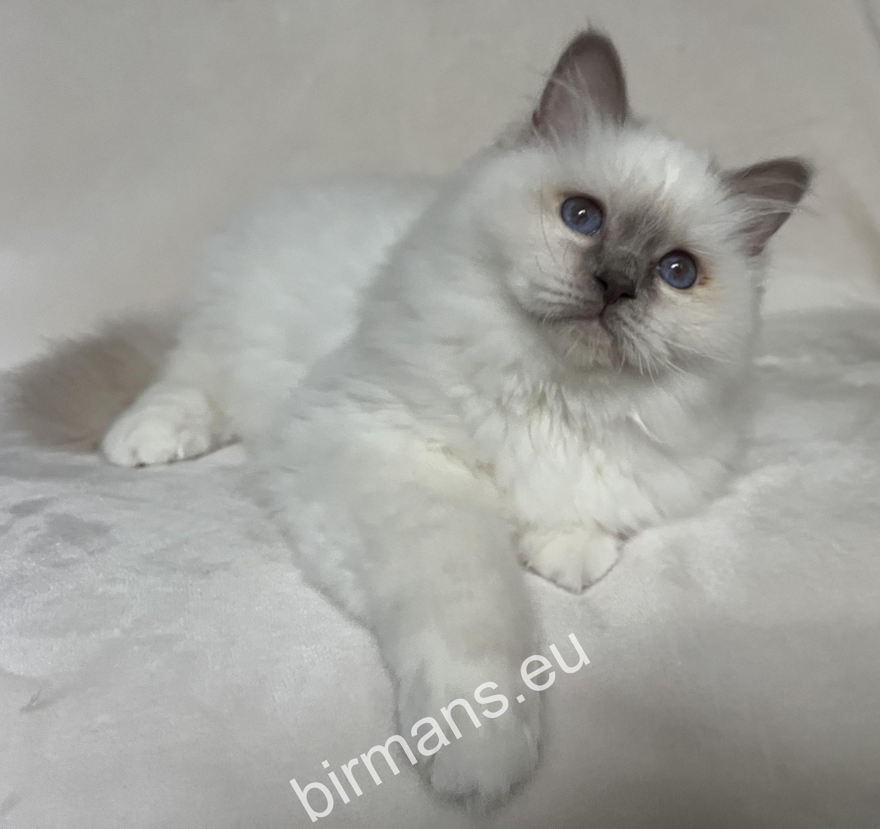 ICH Saba Una – Seal Point Birman nőstény. A Saba Birman tenyészet ikonikus képviselője, amely a nemzetközi minőség és a fajta eleganciáját képviseli.